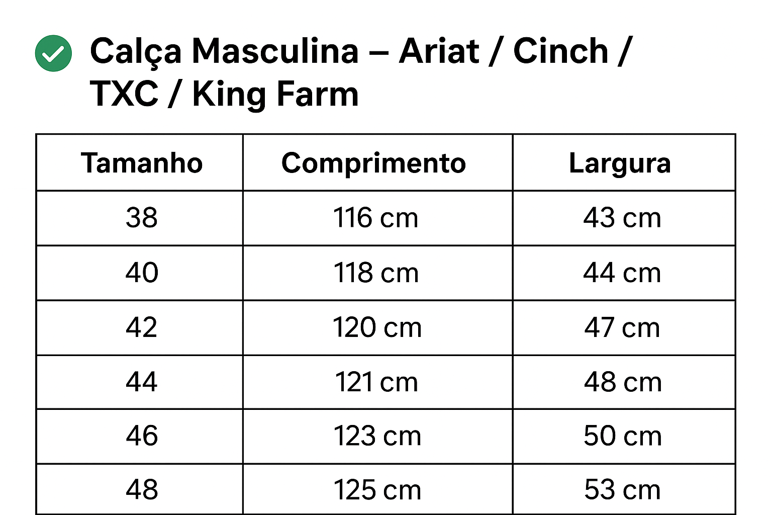 Escolha a Calça Country ARIAT para unir tradição, conforto e qualidade em uma única peça, e viva o melhor do estilo country com autenticidade e resistência.